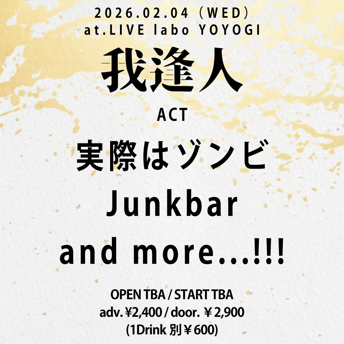 TICKET FREE(1Drink¥600のみ)