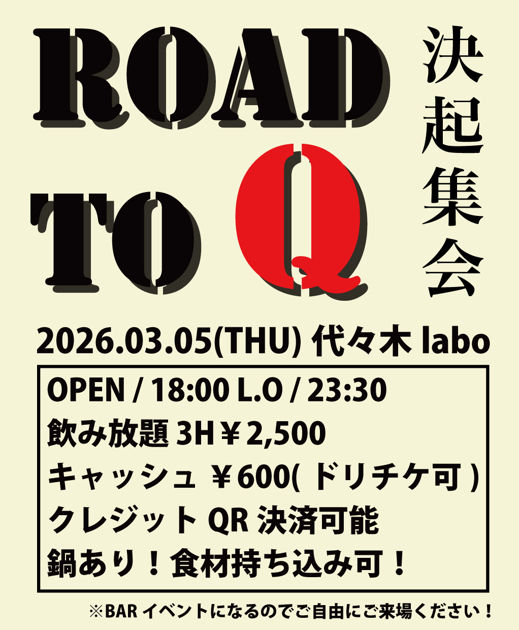 ROAD TO Q 決起集会【BARイベント】